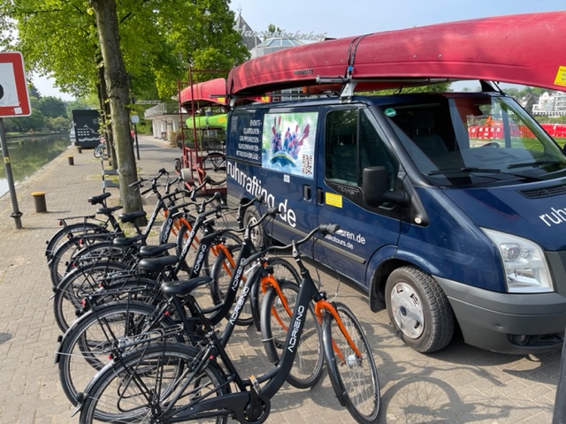 Flussabwärts paddeln. Flussnah radeln. Starten Sie am Vormittag auf Höhe der Staumauer in Essen-Kettwig in einen erlebnisreichen Tag auf und an der Ruhr. Nach der Übernahme unserer Leihräder und einer kurzen Einweisung geht es auf dem idyllischen RuhrtalRadweg entlang des Flusses nach Essen-Werden. Die etwa 8 km lange Strecke ist eben, ohne Steigungen und somit ideal auch für ungeübte Radfahrer. Unterwegs laden Biergärten zu einer entspannten Pause bei einem kühlen Getränk ein. |